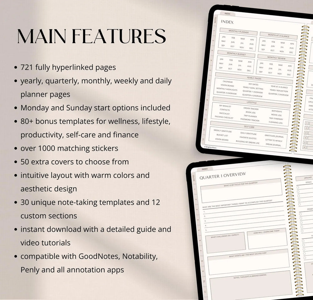 Experience unparalleled organization with a flexible, all-in-one planner that adapts to your unique lifestyle, making productivity and self-care effortless and engaging every day.